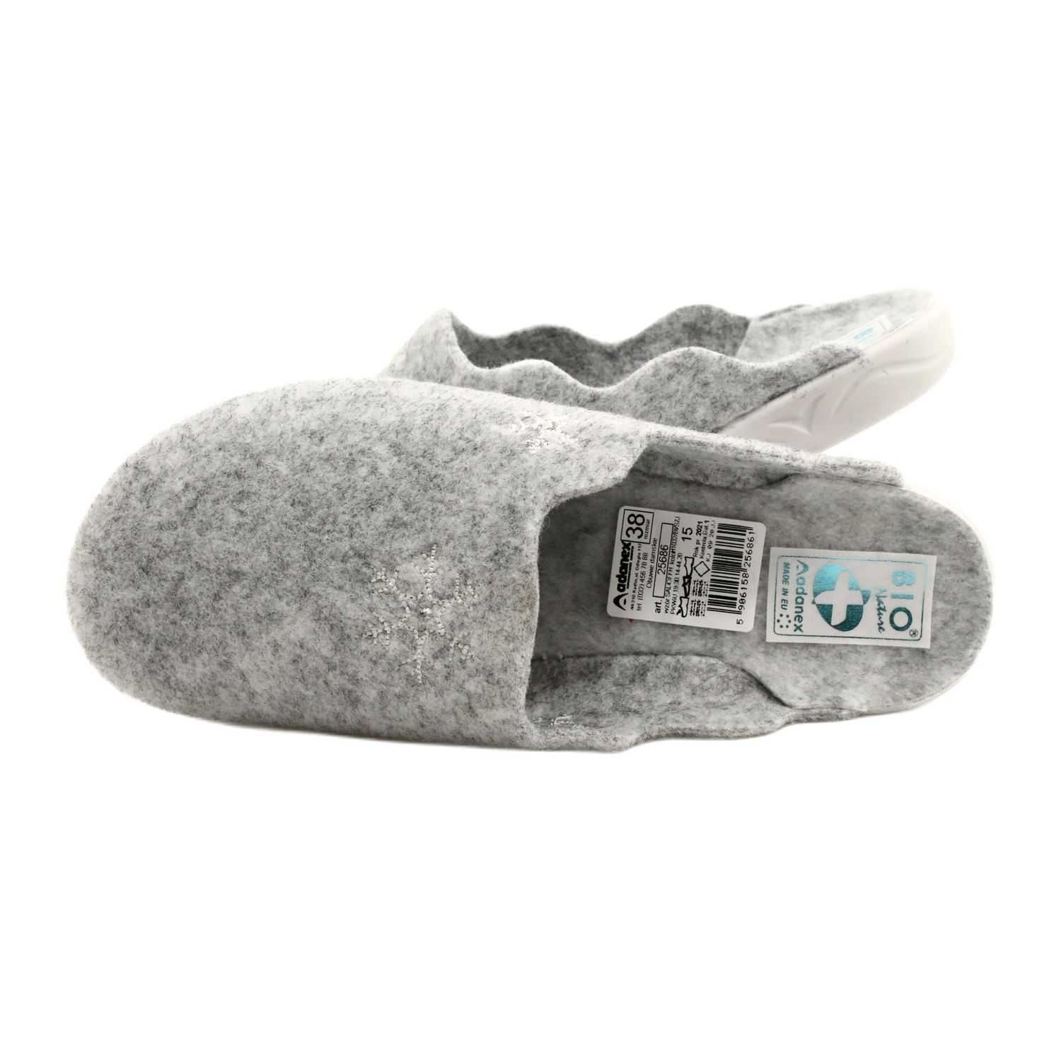 Filcane papuče Adanex 25686 u sivoj boji spoj su udobnosti, stila i funkcionalnosti koji će se sigurno svidjeti svim ženama. Izrađene od visokokvalitetnog filca, ove papuče nude ugodnu toplinu i udobnost, savršene za hladne večeri kod kuće.