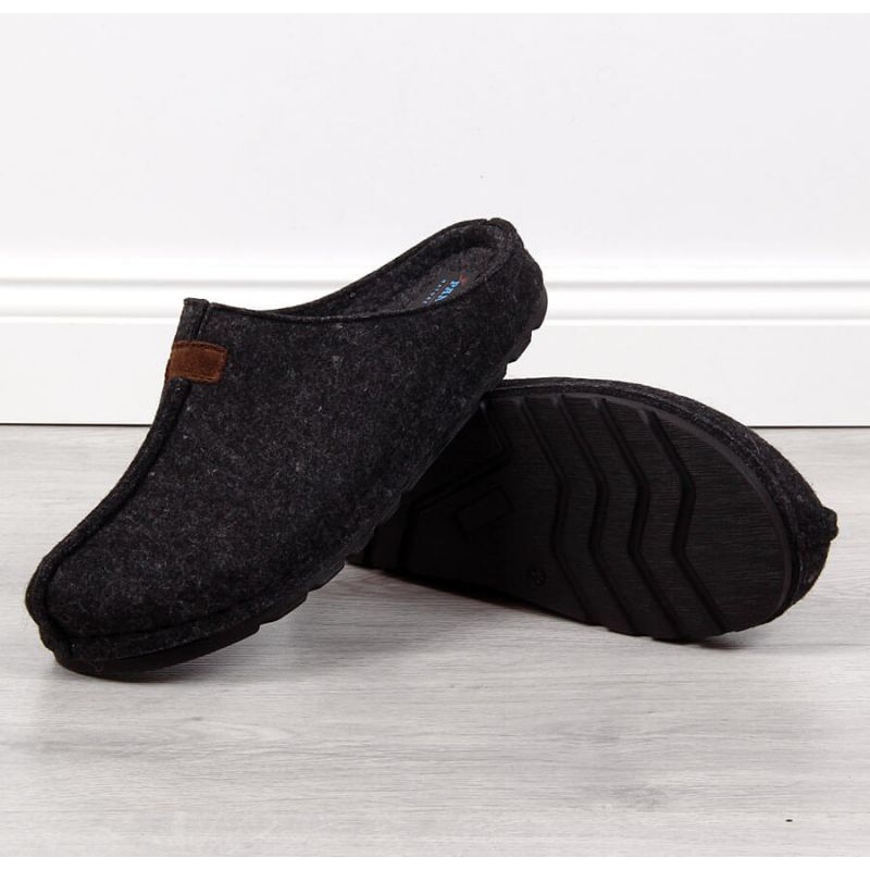 Papuče od filca Panto Fino M INT1630 crne crna siva