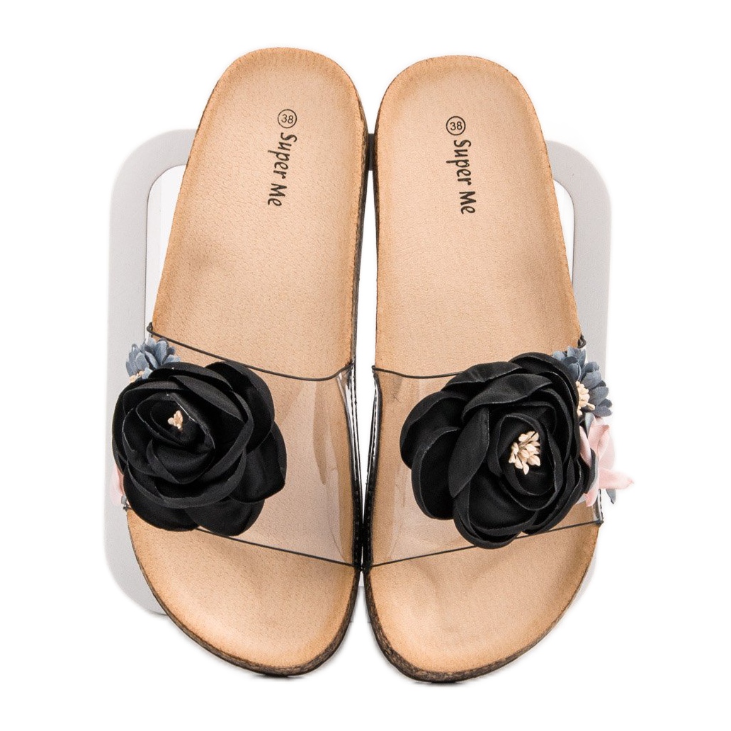 Pojedinosti: Super Me Papuče s cvijećem crna višebojan