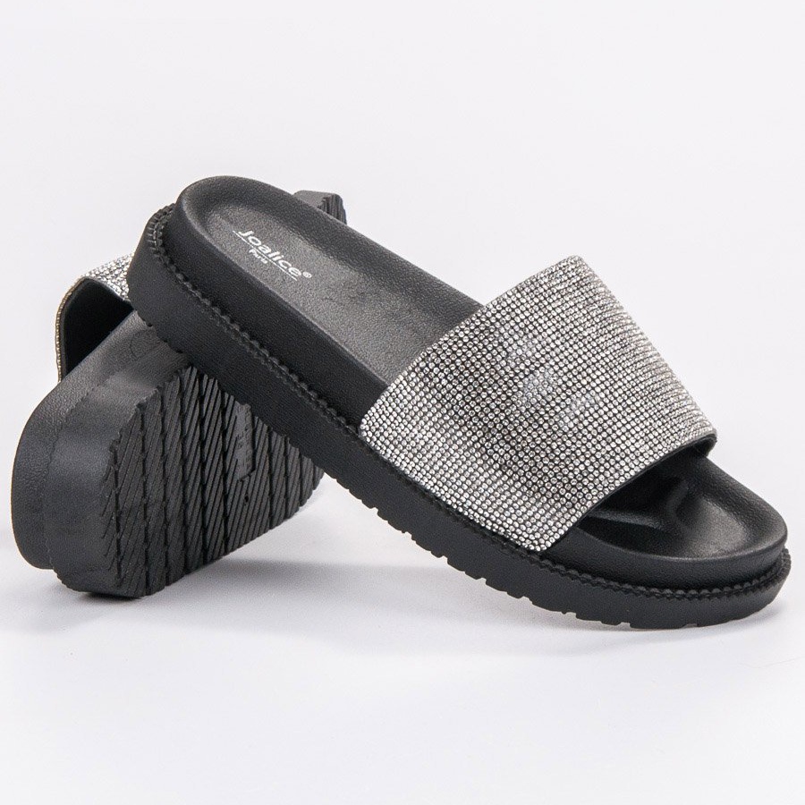 Pojedinosti: SHELOVET Papuče s kristalima crna