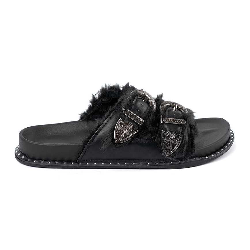 Pojedinosti: Shelvt Papuče s krznom i kopčama crna