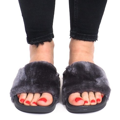 Inna marka Papuče s krznom LS-1 Siva