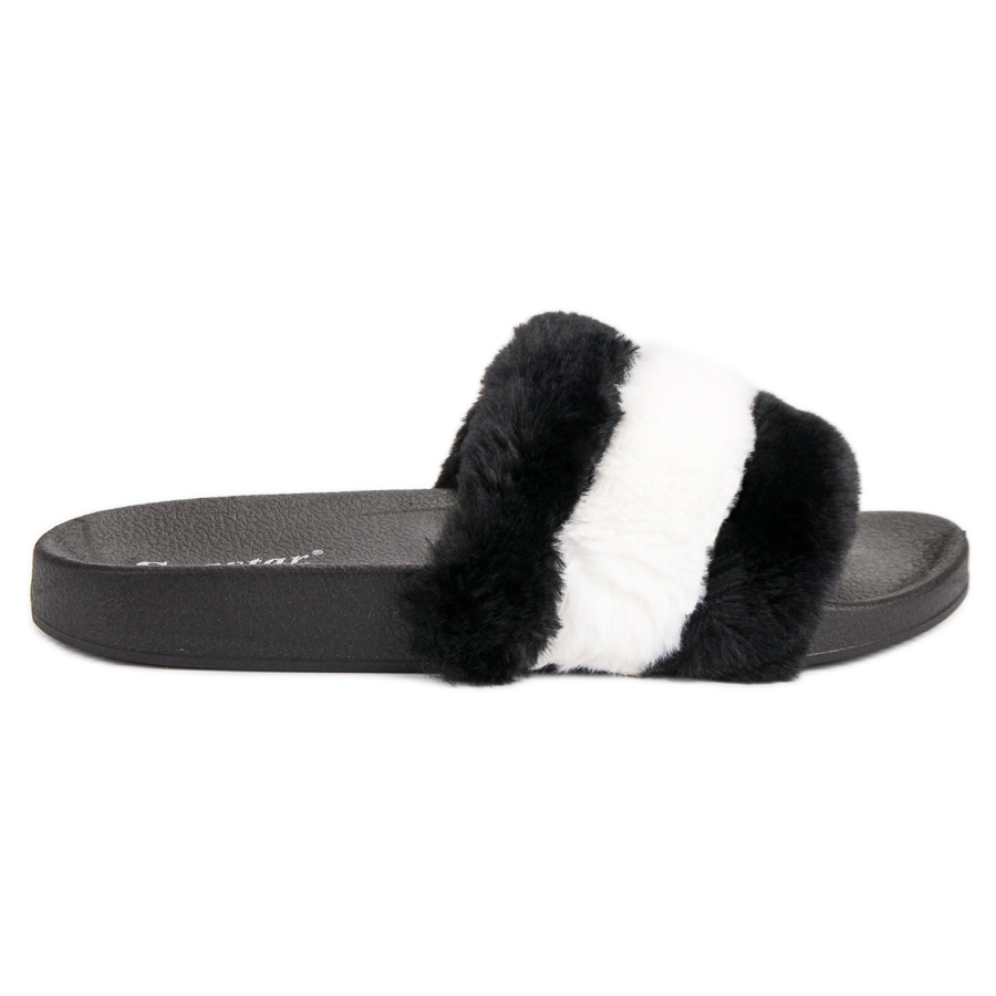 Seastar Japanke s krznom, crne, savršen su izbor za žene koje cijene udobnost i stil kod kuće. Ove natikače odlikuju se ne samo elegantnom crnom bojom, već i originalnim krznom s bijelim i crnim prugama koje im daje jedinstven karakter. Izrađene od visokokvalitetne gume jamče izdržljivost i čvrstoću te će trajati dugo.