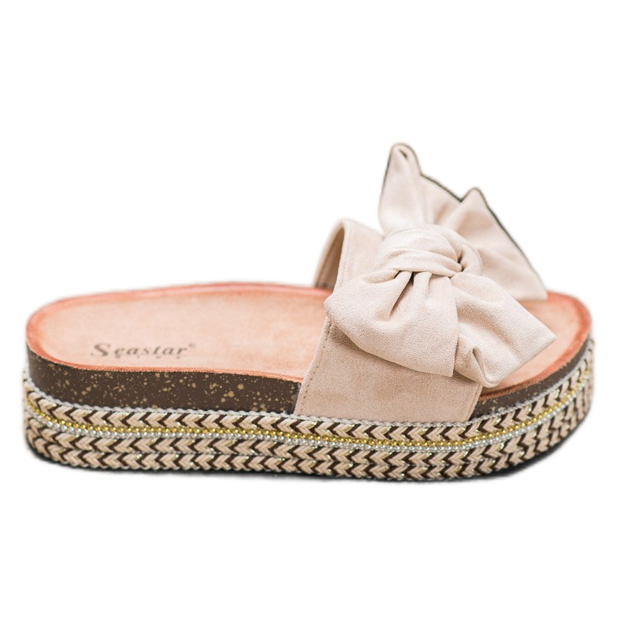 Pojedinosti: Seastar Papuče s mašnom na platformi smeđa višebojan