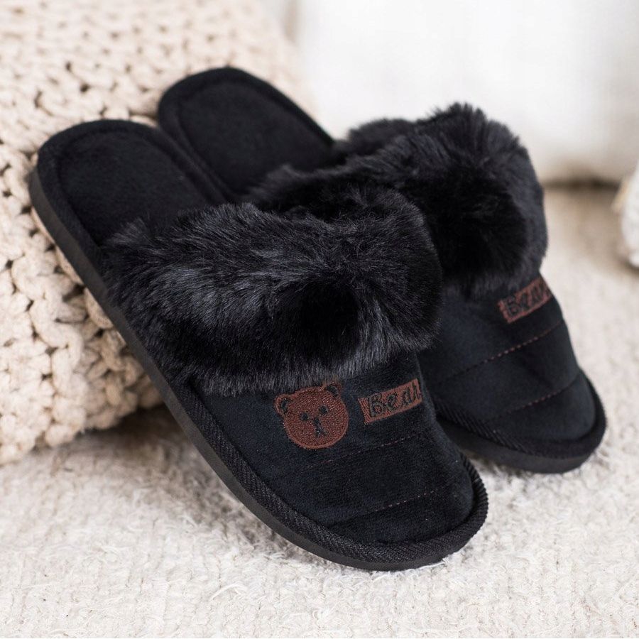 Bona Papuče s medvjeđim krznom crna