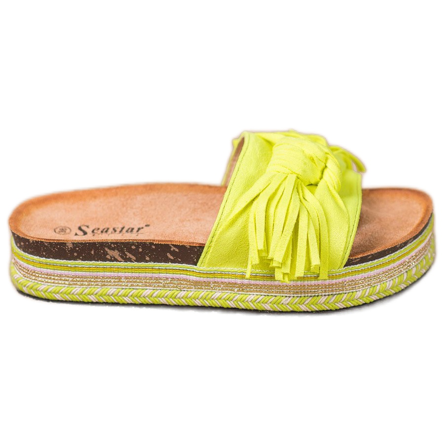 Otkrijte stil i udobnost uz Seastar japanke u sočno žutoj! Tražite li savršenu ljetnu obuću koja će biti ne samo moderna već i udobna, ovaj model će vam se sigurno svidjeti. Japanke se odlikuju originalnim resicama koje im daju jedinstven karakter i savršeno pristaju uz kupaće kostime i urbane kombinacije.