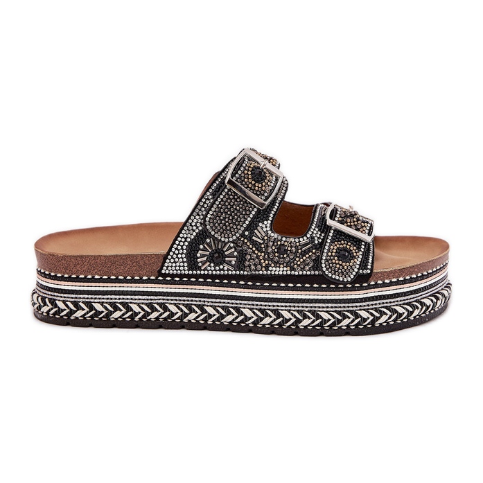 Papuče s ukrasom i kopčama na crnoj platformi crna