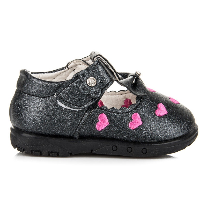 Crna srca sa srcima su simpatične i praktične balerine stvorene za najmlađe. Izrađena od ekološke kože, savršena za proljetnu/ljetnu sezonu. Delikatni luk daje im djevojački šarm, a čičak pričvršćivač olakšava stavljanje i uklanjanje čak i male djece.