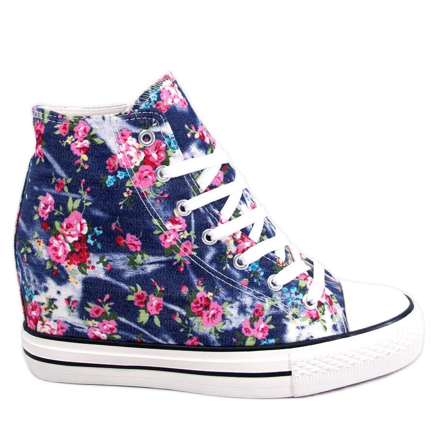 Pojedinosti: BM Paradis tamnoplave cvjetne visoke tenisice na klin plava