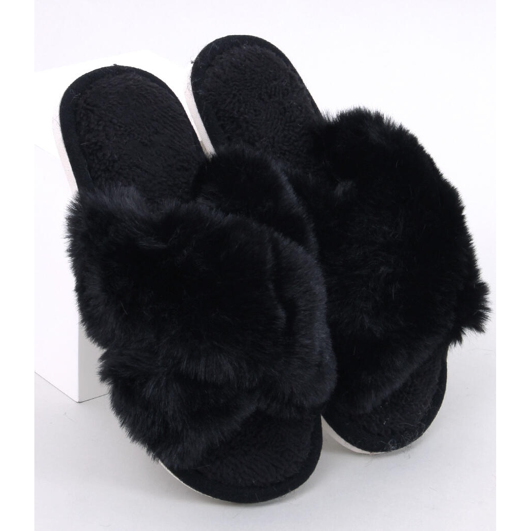 Papuče s krznom - prekrižene pruge, crne
