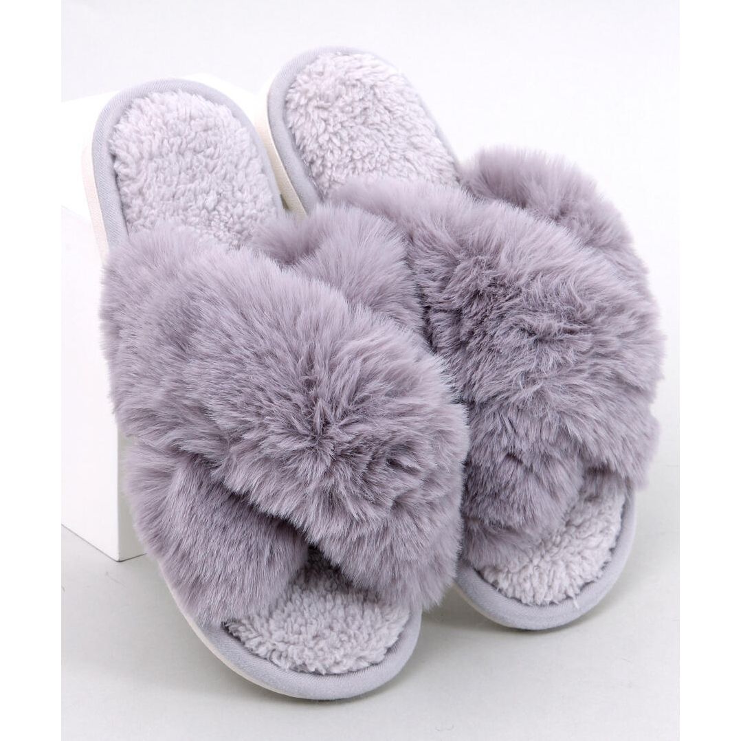 Inna marka Parris sive krznene papuče s križnim naramenicama siva