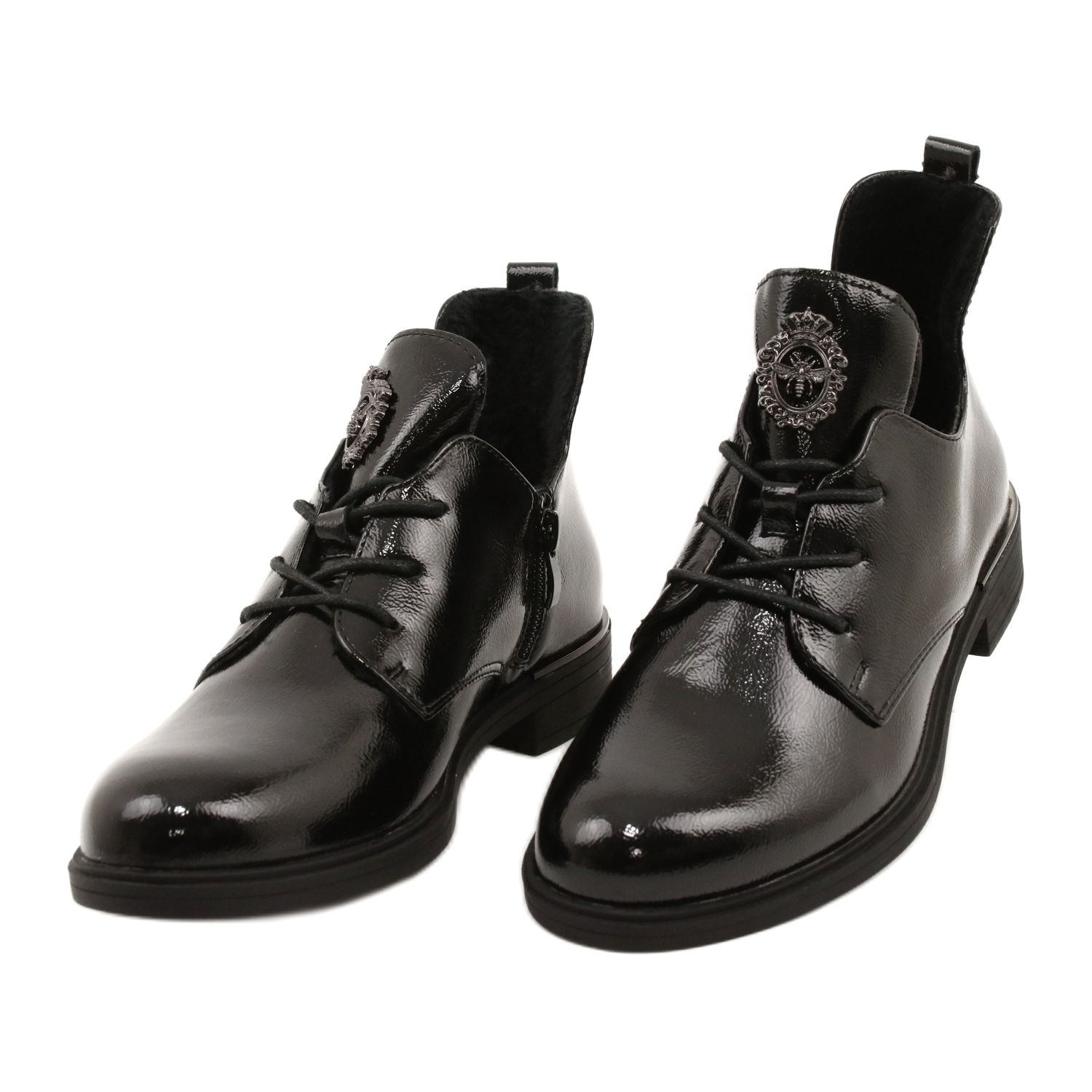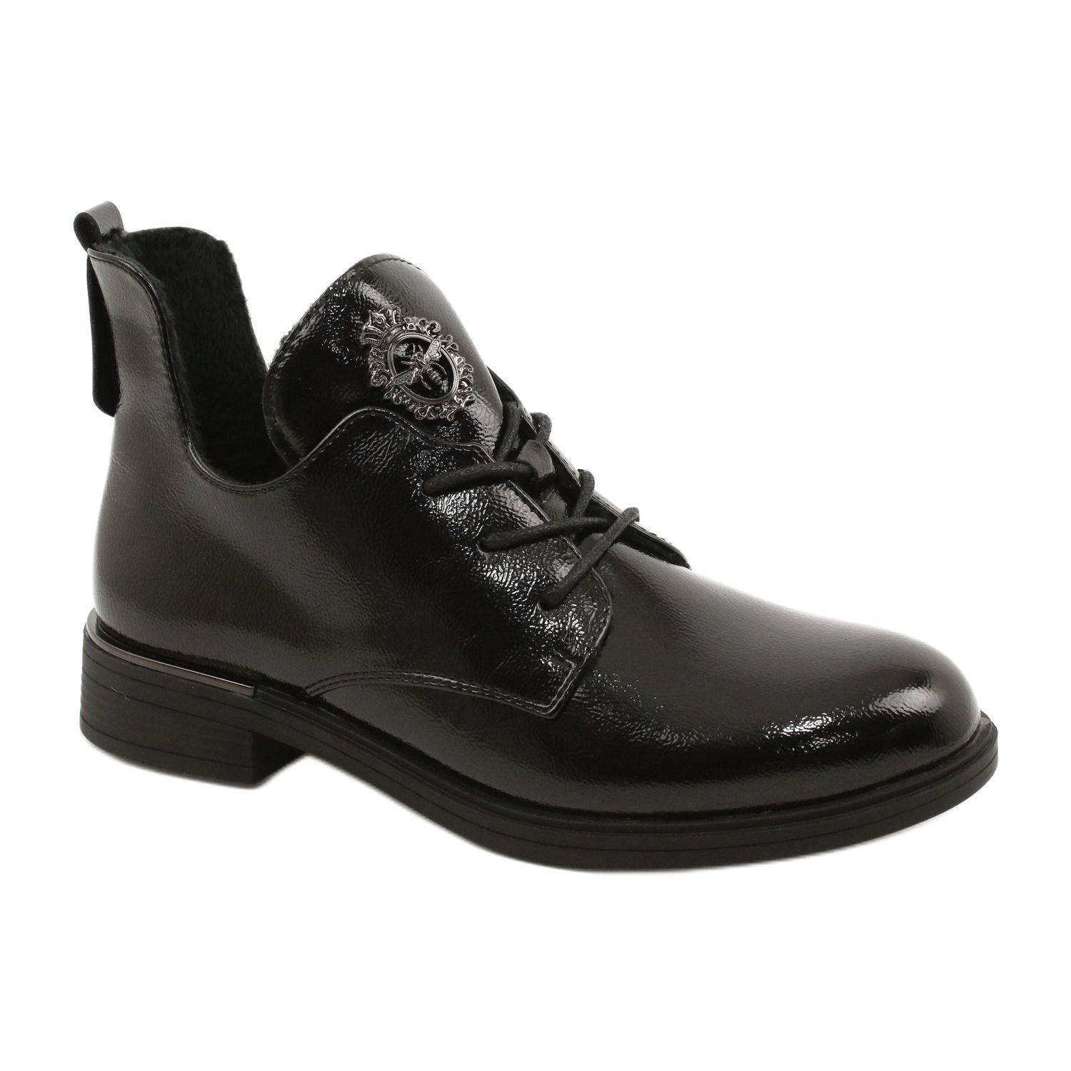 Crne lakirane gležnjače Sergio Leone PB262 savršen su izbor za svaku elegantnu ženu koja želi spojiti moderan izgled s udobnošću nošenja. Izrađena od visokokvalitetne ekološke kože, obuću karakterizira ne samo upečatljiv sjaj, već i pažljiva završna obrada.