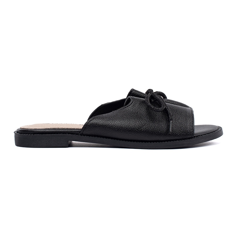 Goodin Black Flip Plops s lukom obavezno je u svakoj kolekciji ženske obuće. Njihova univerzalna crna boja i suptilni dizajn čine ih savršenim dodatkom ljetnim haljinama i ležernim stilizacijama s labavim hlačama.