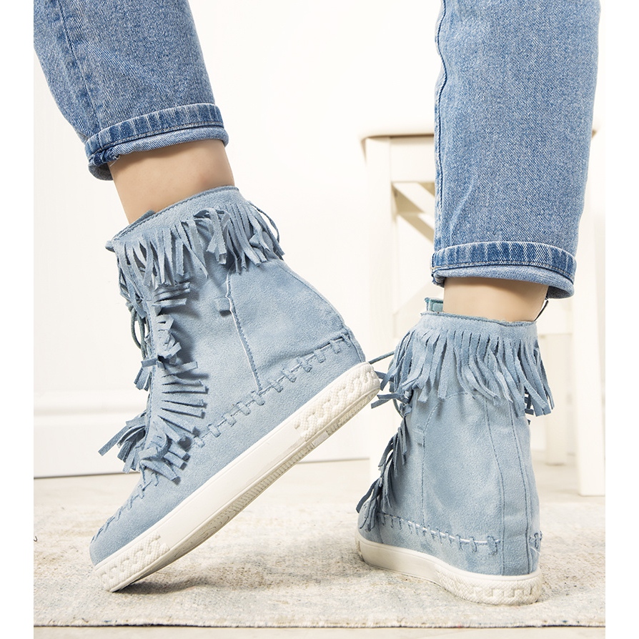 Otkrijte boho stil s plavim Dias tenisicama na wedge! Ove jedinstvene čizme spajaju moderan dizajn i udobnost koju ćete cijeniti svaki dan. Izrađene od visokokvalitetne antilop ekološke kože u šarmantnoj plavoj nijansi savršeno se uklapaju u najnovije trendove u obući.