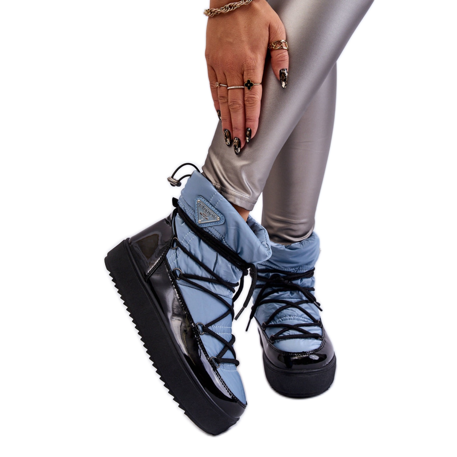 Pojedinosti: Plave ženske čizme za snijeg na vezanje plava