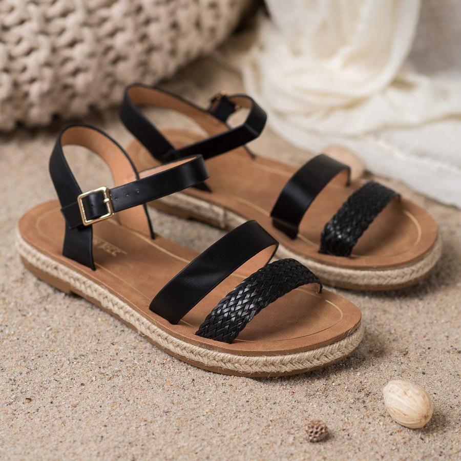 Pojedinosti: SHELOVET Pletene eko kožne sandale crna