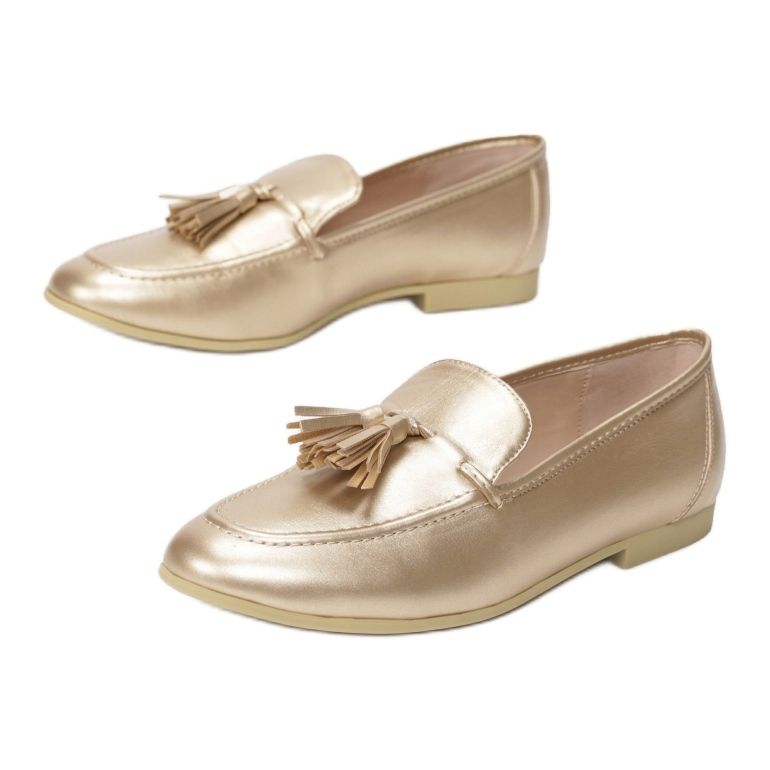 Vices 1184-37 mokasinke u nijansi zlata savršen su izbor za žene koje žele spojiti eleganciju s udobnošću. Ove elegantne cipele iz kategorije "KeeShoes" odlikuju se ne samo atraktivnim izgledom, već i visokokvalitetnim materijalima. Izrađene od ekološke kože, izgledaju izuzetno impresivno, a njihov slip-on dizajn čini ih udobnima i lakima za obuvanje.