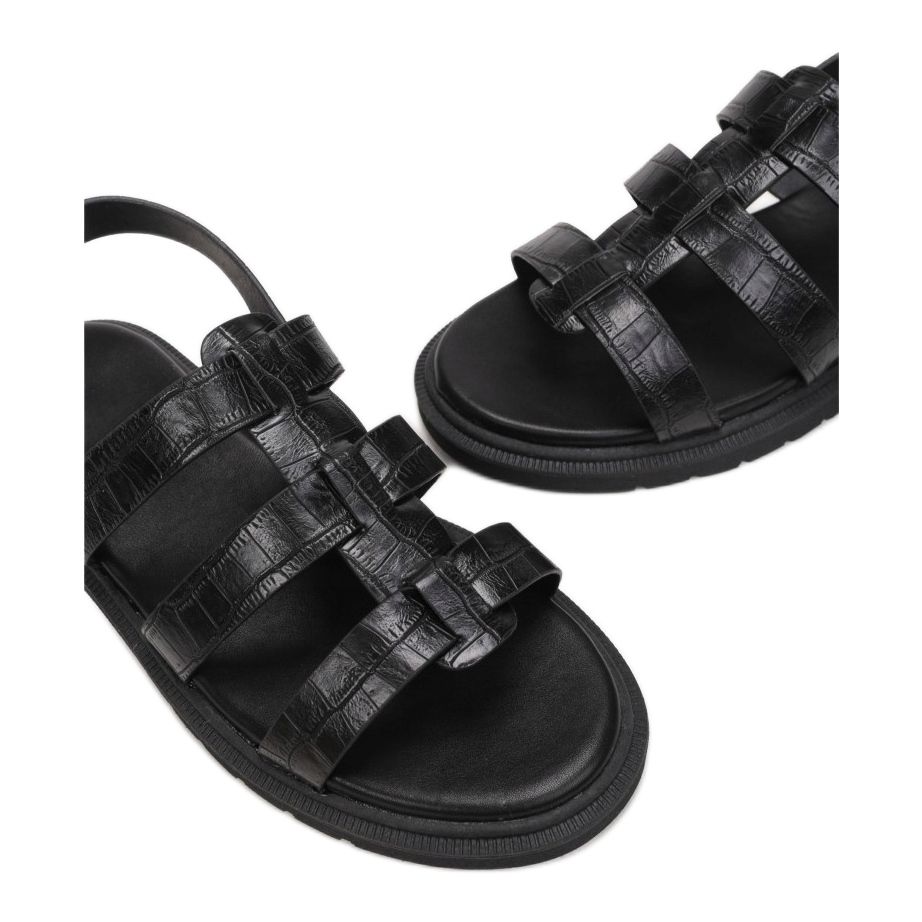 Otkrijte eleganciju i udobnost uz Vices 1957-10-38 sandale u klasičnoj crnoj boji. Ove elegantne sandale, koje se metalnom kopčom kopčaju samo na gležnju, savršen su izbor za svaku modernu ženu. Na ravnom, debelom potplatu osiguravaju udobnost nošenja tijekom cijelog dana, bez obzira na priliku.