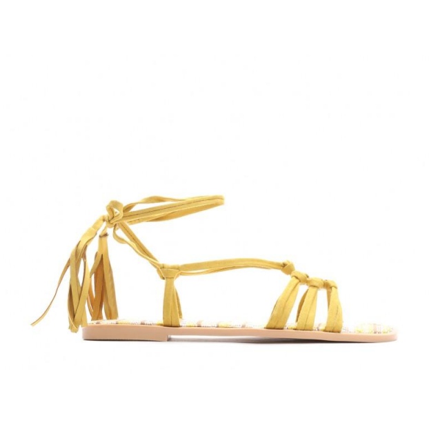 Odrezani vrh i otkrivena peta čine sandale prozračnima, što ih čini savršenim izborom za vruće dane. Vezivanje tik iznad gležnja omogućuje savršeno pristajanje, što značajno povećava udobnost korištenja. Ravni, sintetički potplat bez gazišta osigurava stabilnost i udobnost pri svakom koraku.