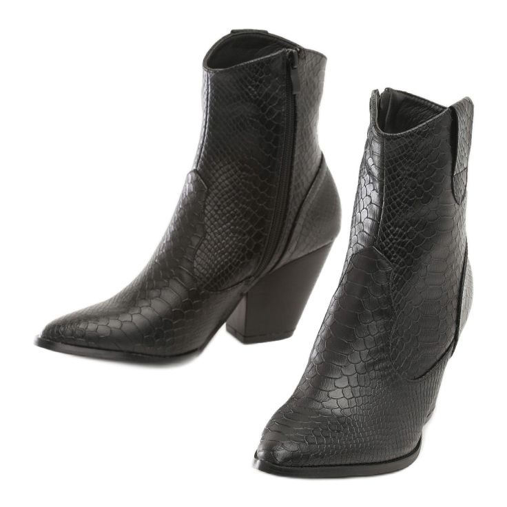 Predstavljamo jedinstvene kaubojske čizme Vices 3329-38 u klasičnoj crnoj boji koje će savršeno upotpuniti svaki jesenski i zimski stajling. Ove originalne cipele, kopčaju se praktičnim patentnim zatvaračem, izrađene su od visokokvalitetne ekološke kože koja efektno imitira zmijsku kožu.