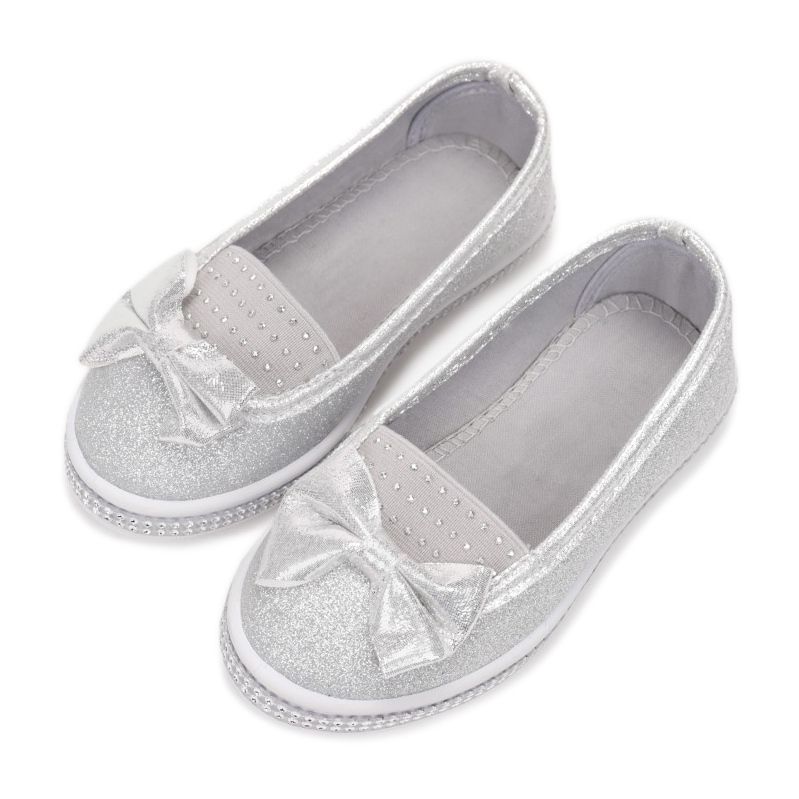 Na prstima je fleksibilna guma, također presvučena imitacijom cirkona, koja ne samo da naglašava njihov jedinstven dizajn, već osigurava i udobnost nošenja. Cipele su izrađene od kvalitetne tkanine, sjajne sa šljokicama, što ih čini atraktivnim i privlačnim.