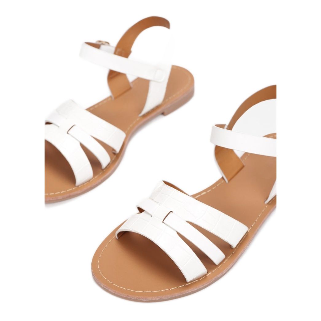 Ove moderne sandale imaju ravnu petu od 1,0 cm, što ih čini prikladnim kako za svakodnevne šetnje tako i za ljetne izlaske. Nedostatak nosa i kopčanje na kopču čine ih laganim i suptilnim, a bijela boja ih čini iznimno univerzalnima i pristaju uz mnoge boje i uzorke.