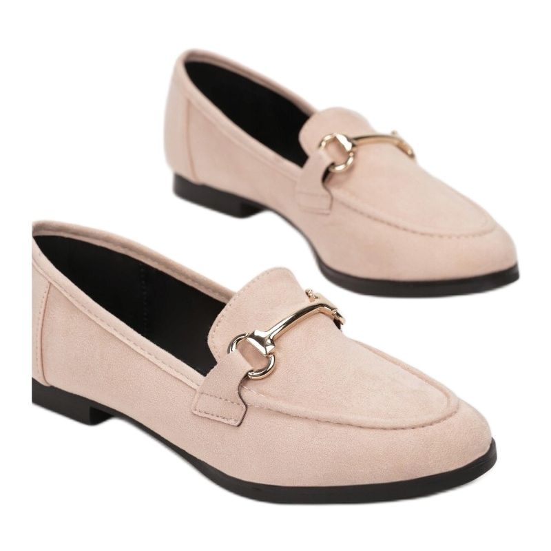 Mokasine imaju zaobljeni vrh, što dodaje klasičnu estetiku. Na prednjem dijelu cipele nalazi se nježna zlatna kopča koja joj daje jedinstven karakter. Zahvaljujući slip-on dizajnu, obuvanje i izuvanje je izuzetno jednostavno i praktično. Mekana ugrađena potpetica jamči dodatnu udobnost, a crni sintetički potplat s gazištem stabilizira svaki korak.