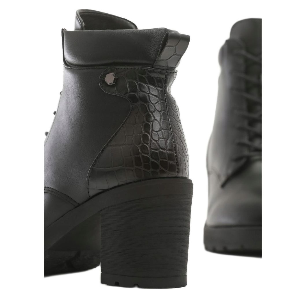 Srednja potpetica u obliku bloka visine 8 cm dodaje suptilnu eleganciju i stanji figuru, a potplat sa štitnikom osigurava stabilnost i udobnost u svakodnevnoj uporabi. Visoke čizme do gležnja savršen su dodatak svakom ormaru, a njihov minimalistički dizajn bez uzorka pristaje uz mnoge stilove.