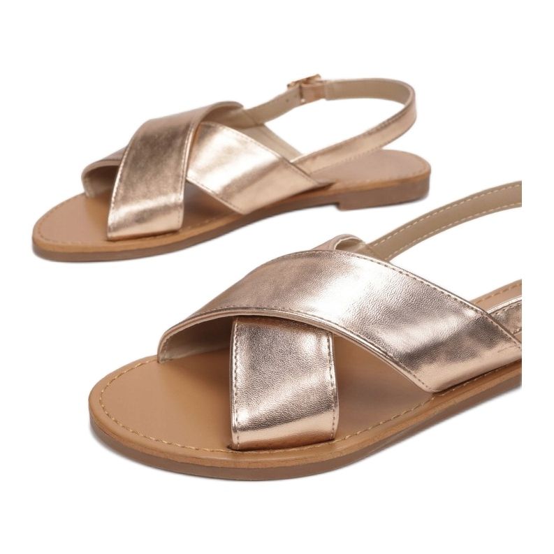 Sandale karakteriziraju široke, prekrižene trake koje savršeno podupiru stopalo, a otvorena peta osigurava izvrsnu ventilaciju i za toplih dana. Dodatna prednost je kopčanje na gležnju tankim remenom s kopčom, koji ne samo da stabilizira cipelu, već i daje sofisticiranost cijelom izgledu.