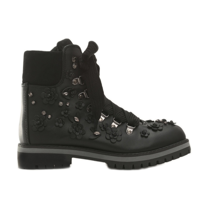 Dodatni privlačan element su kamenčići koji ukrašavaju čizme, dajući im jedinstven karakter i notu izražajnosti. Kopčanje na čipku omogućuje savršeno pristajanje uz nogu, a neutralna širina čini da ovaj model zadovoljava potrebe mnogih žena.