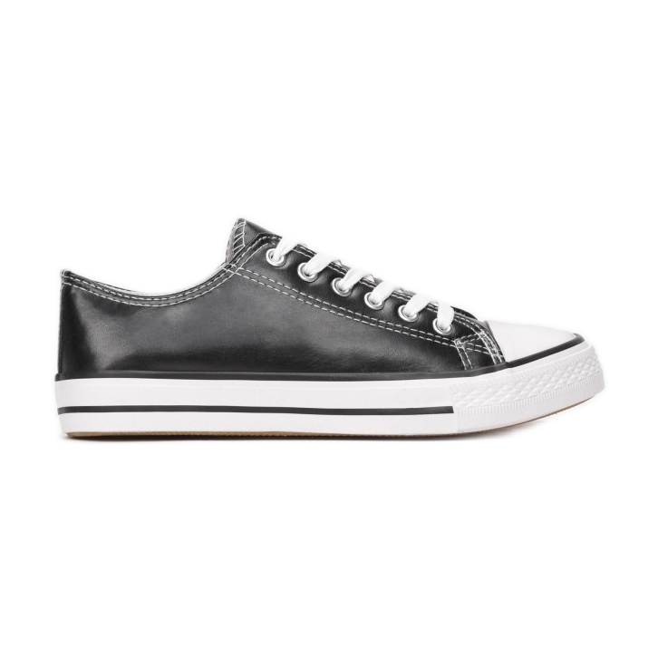 Tenisice Vices FG-2913-1-38 crne su idealna opcija za žene koje cijene moderan dizajn i udobnost nošenja. Izrađene od visokokvalitetne eko-kože, ove cipele ne samo da pružaju moderan izgled, već ih je i lako održavati. Njihov klasičan, okrugli vrh i ravna peta visine 2 cm čine ih savršenim izborom za proljetne i ljetne dane.
