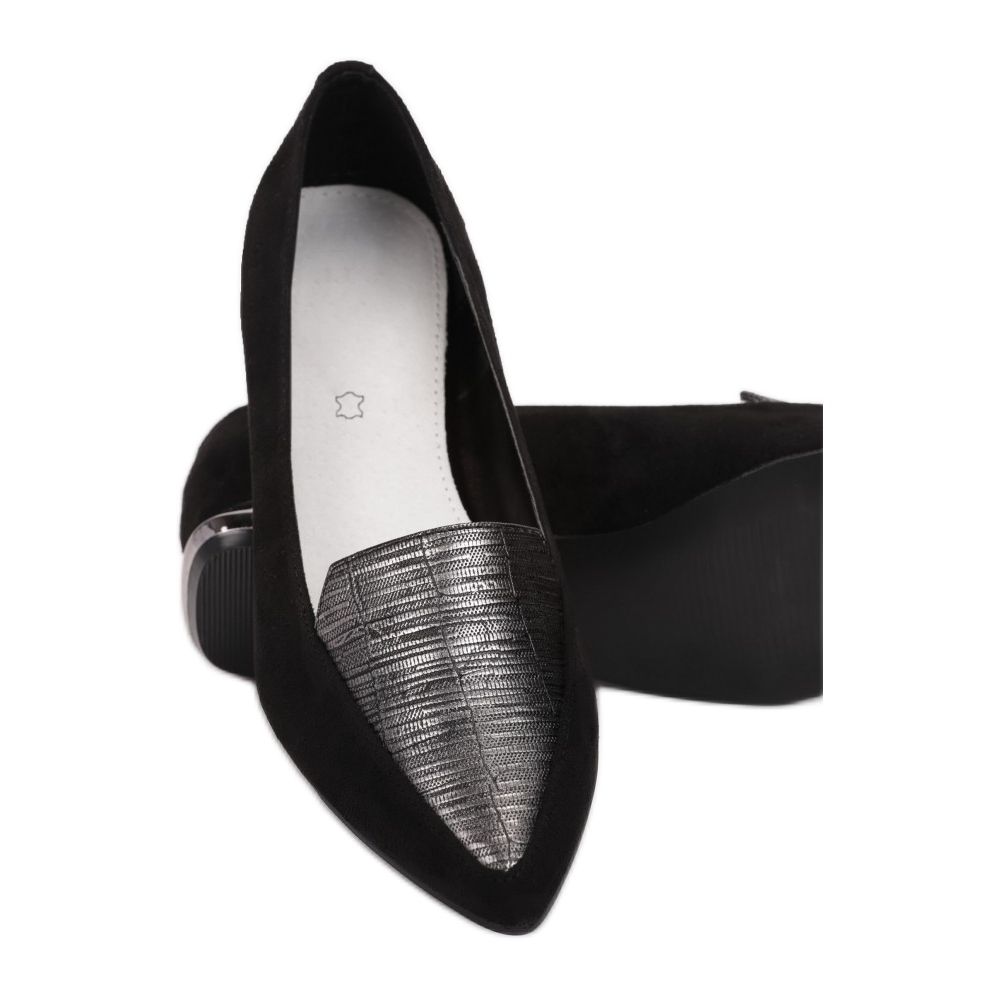 Otkrijte eleganciju i udobnost s crnim pumpama Vices FL354A. Ove natikače spajaju moderan dizajn i funkcionalnost, što ih čini savršenim izborom za razne prilike. Postavljene na nepravilnu, nisku petu visoku 2 cm, nude izvrsnu stabilnost, a istovremeno pružaju tanak, šiljati vrh koji dodaje eleganciju cijelom stajlingu.