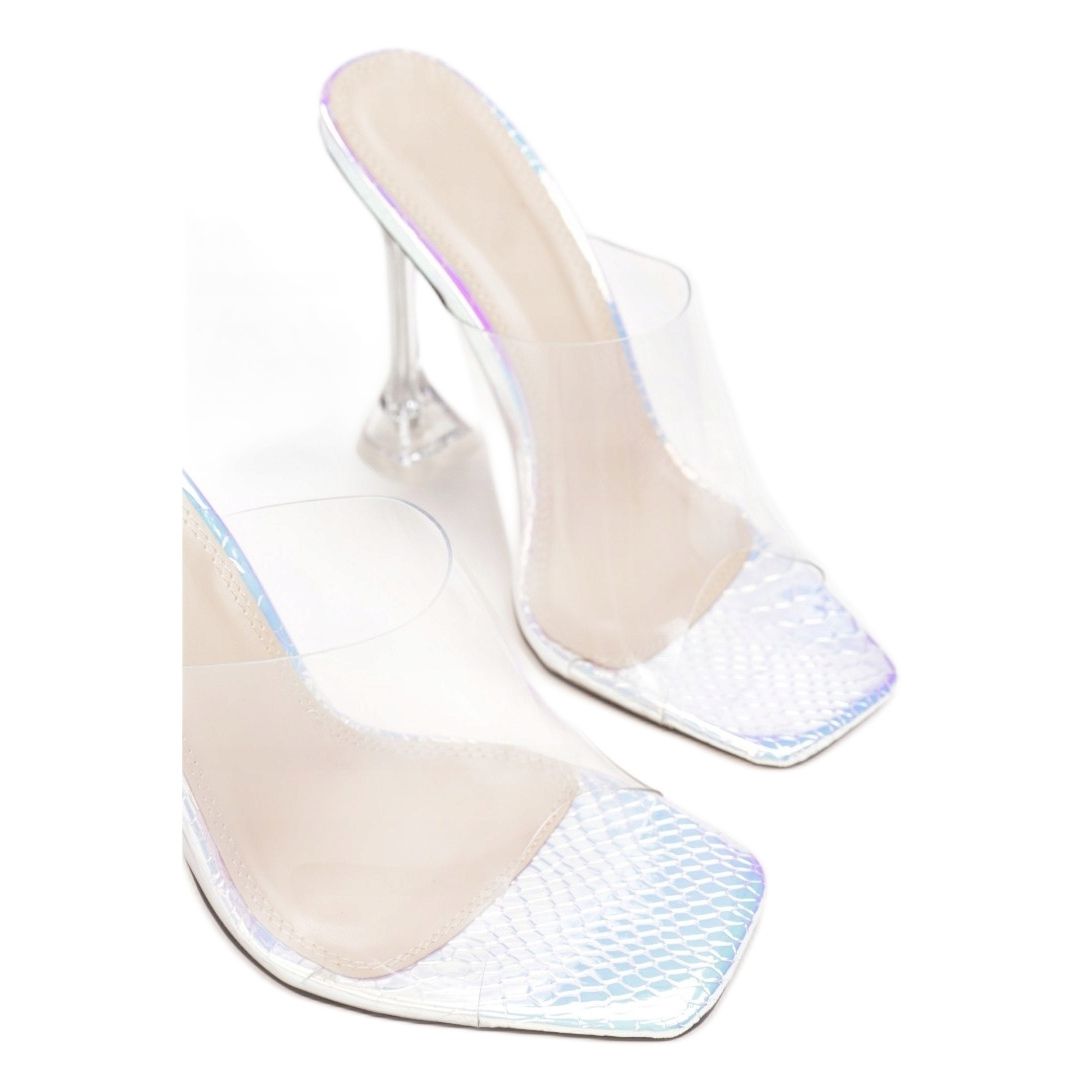 Ove japanke karakteriziraju zaobljeni vrh i otvoreni prsti, što stopalu omogućuje slobodno disanje i otkriva elegantnu manikuru. Prozirni silikonski remen savršeno se prilagođava stopalu, a metalik uložak ukrašen reljefom u obliku riblje ljuske daje im jedinstven karakter.