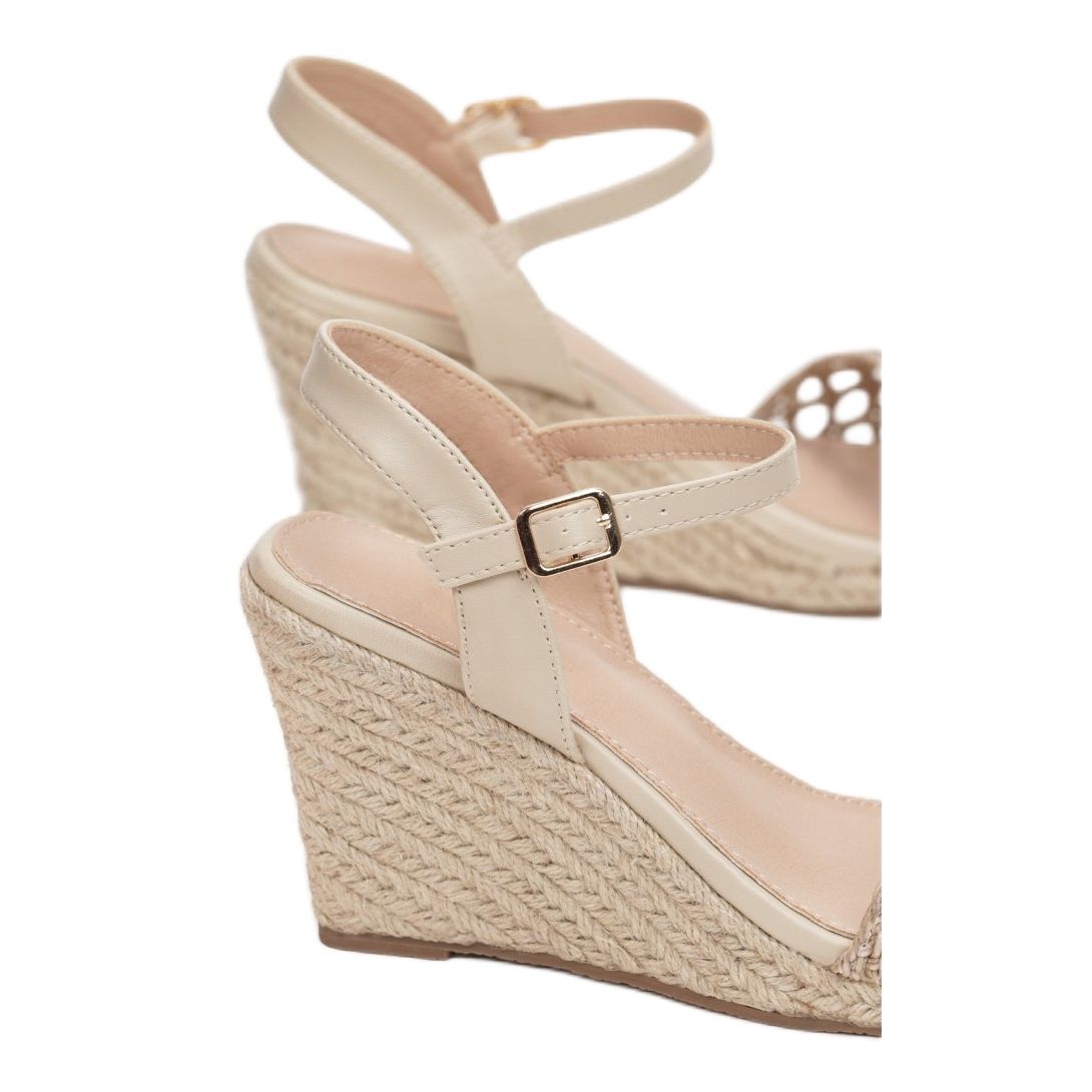 Kopčaju se praktičnom kopčom, osiguravaju savršeno pristajanje uz nogu, što svaki trenutak proveden u ovim sandalama čini užitkom. Potplat ukrašen pletenicama od jute ne samo da privlači pažnju, već i dodaje lakoću cijeloj kompoziciji.