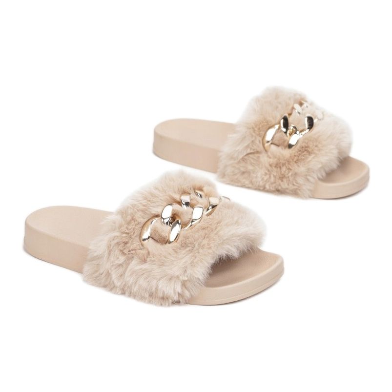 Predstavljamo Vices NA18-42 slip-on tobogane u elegantnoj bež boji, koji savršeno spajaju udobnost s modernim dizajnom. Ove moderne japanke odlikuje se širokim remenčićem od imitacije krzna koji im daje izniman šarm i čini ih iznimno udobnima za nošenje. Aplikacija u obliku lančića smještena na vrhu remena daje im malo ekstravagancije, što ih čini idealnim izborom kako za svakodnevnu upotrebu tako i za razne prigode.