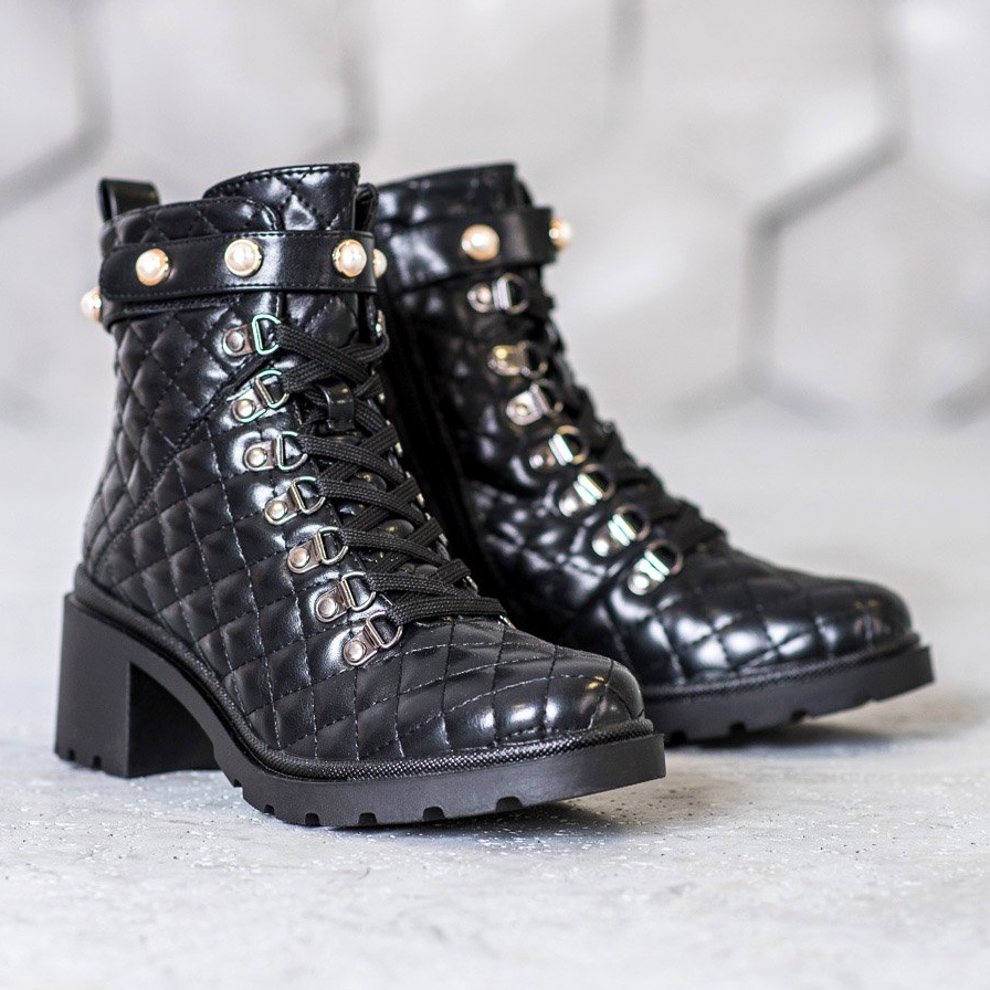Izrađene od visokokvalitetne ekološke kože, s prošivenim uzorkom, izgledaju izuzetno atraktivno. Zahvaljujući vezicama sprijeda i praktičnom patentnom zatvaraču s unutarnje strane, obuvanje i skidanje je čisti užitak. Čvrst potplat s platformom visine 2 cm i petom visine 5,5 cm osigurava ne samo moderan izgled, već i udobnost nošenja tijekom cijelog dana.
