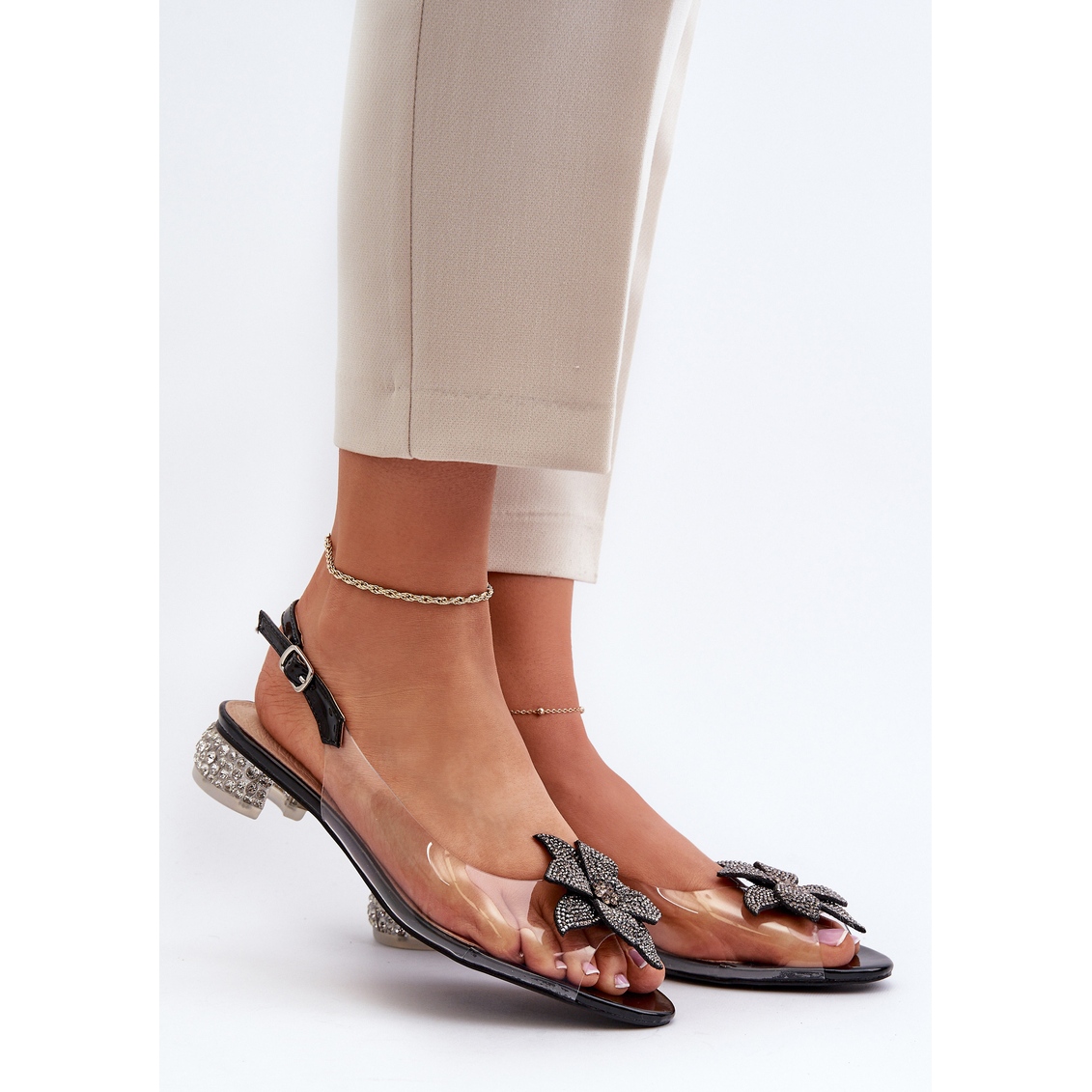 Detalji: S.Barski Prozirne sandale na nisku petu s crnim ukrasom D&A MR38-383 crno