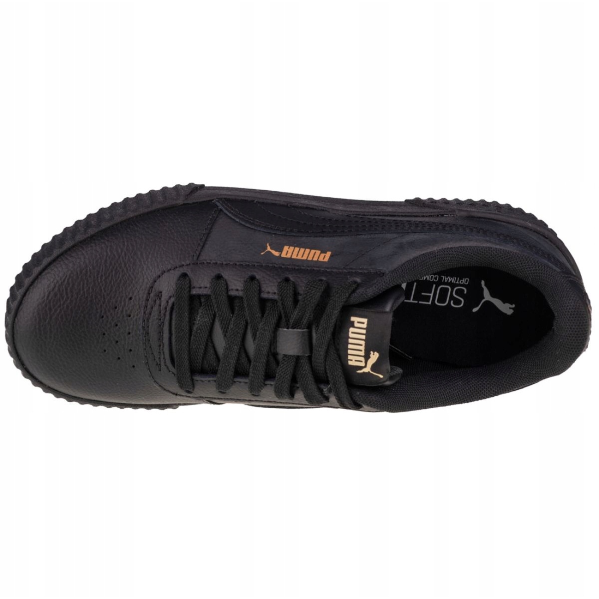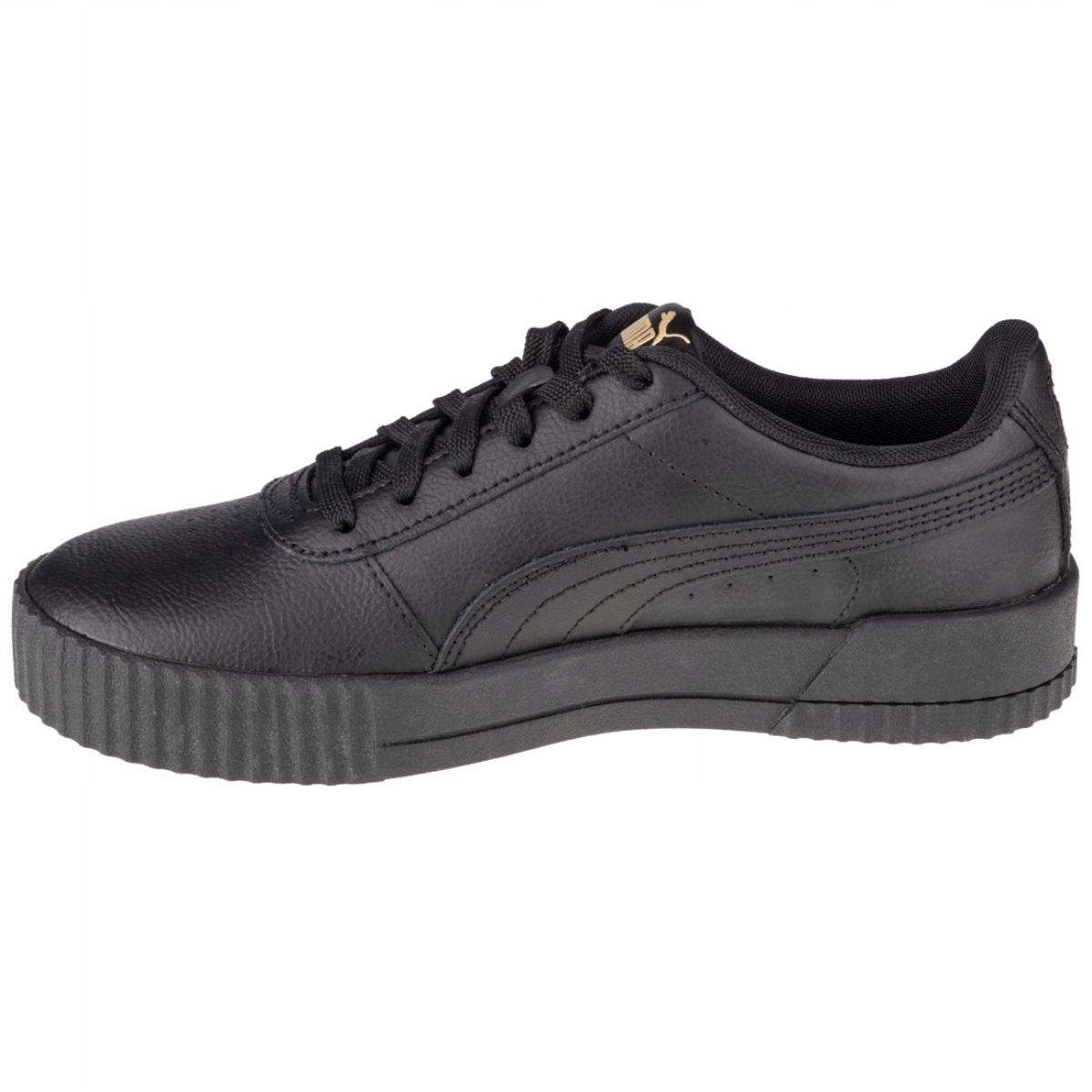 Predstavljamo elegantne i funkcionalne cipele Puma Carina LW 370325 08 u crnoj boji sa zlatnim detaljima - savršen izbor za moderne žene koje traže moderne cipele za svaki dan.