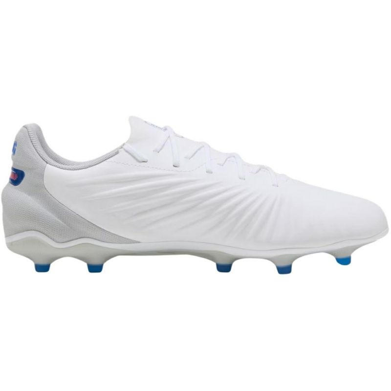 Puma King Match FG/AG razlikuje se ne samo funkcionalnošću, već i jedinstvenom, bijelom bojom s plavim naglascima, što im daje sportski i elegantan izgled. Jedini je dizajniran za optimalni kontakt s površinom, što jamči veliko prianjanje i povećava sigurnost tijekom dinamičnih pokreta na terenu.