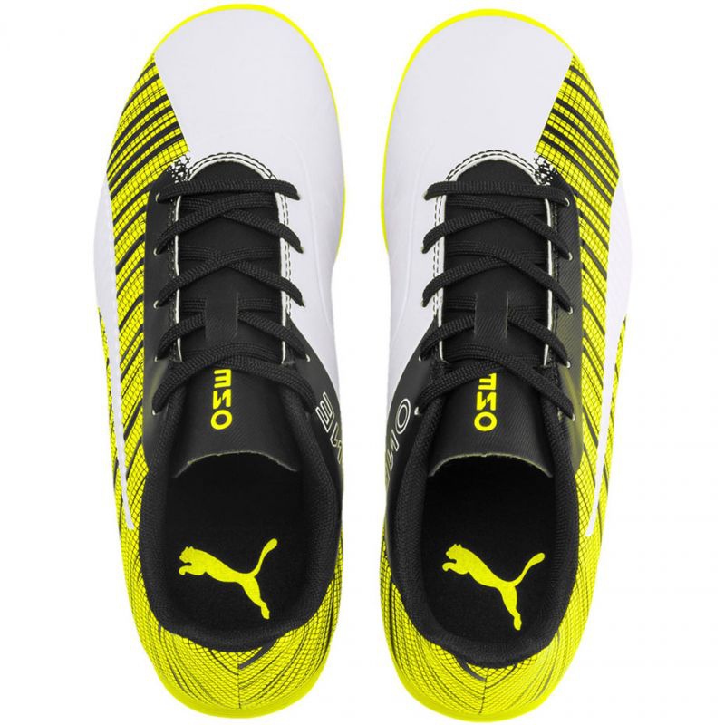 Nogometne tenisice Puma One 5.4 IT Jr 105664 04 savršen su izbor za mlade sportaše koji žele razviti svoje vještine na dvoranskom terenu. Dio najnovije kolekcije Puma Rush Pas, ove višebojne cipele u nijansama žute, bijele i crne pružaju ne samo moderan izgled, već i udobnost i potporu koja je ključna tijekom intenzivnih utakmica.
