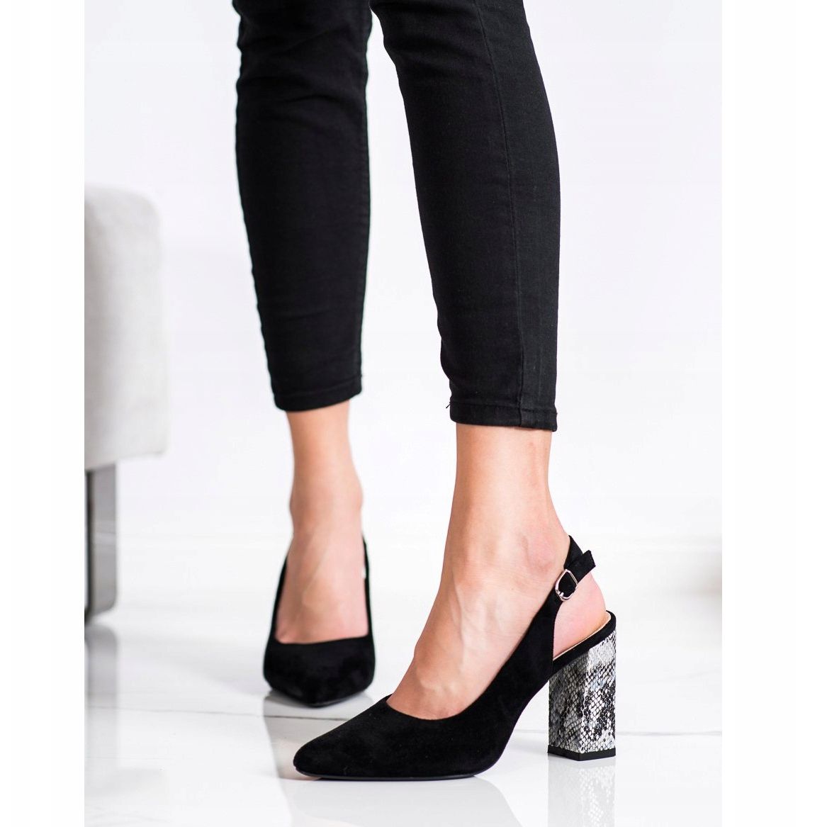 Zahvaljujući peti visine 9,5 cm, silueta postaje svjetlija i svaka se žena može osjećati samouvjereno i elegantno. Potplat od sintetičkog materijala i uložak od prirodne kože jamče izdržljivost i udobnost korištenja. Zauzvrat, ekološka antilop koža od koje je izrađen vanjski premaz ne samo da izgleda impresivno, već je i ekološki prihvatljiva.