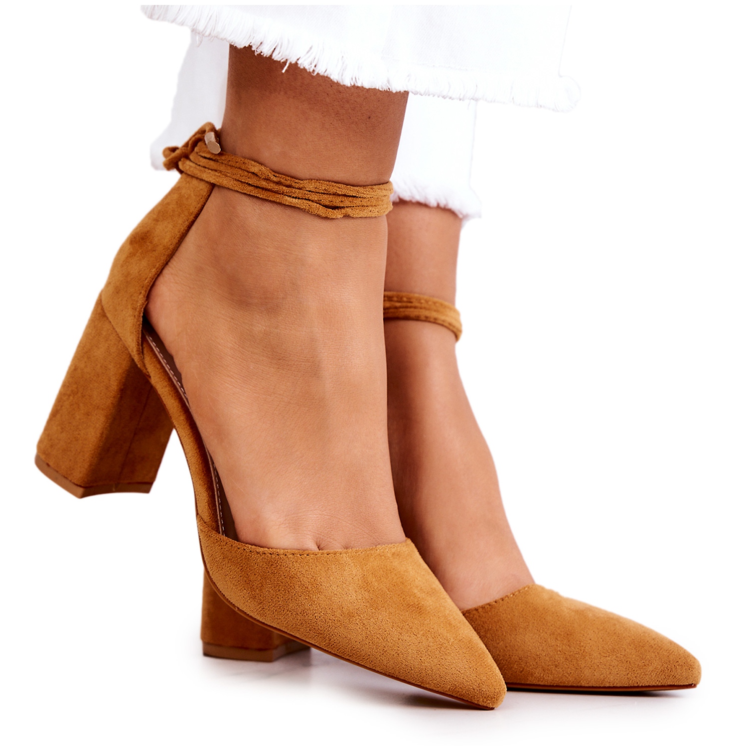Cipele karakterizira tanak šiljati vrh i stabilna blok peta visine 8,5 cm, koja dodaje eleganciju i svaki stajling čini jedinstvenim. Dodatna prednost je mogućnost vezanja oko noge, što omogućuje individualno krojenje i ističe ljepotu vaše figure.