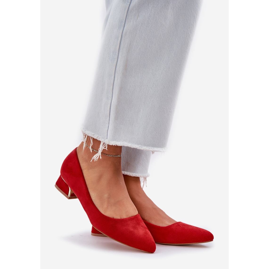Detalji: Pumpe s niskim potpeticama i šiljastim nožnim prstima crvene crvena