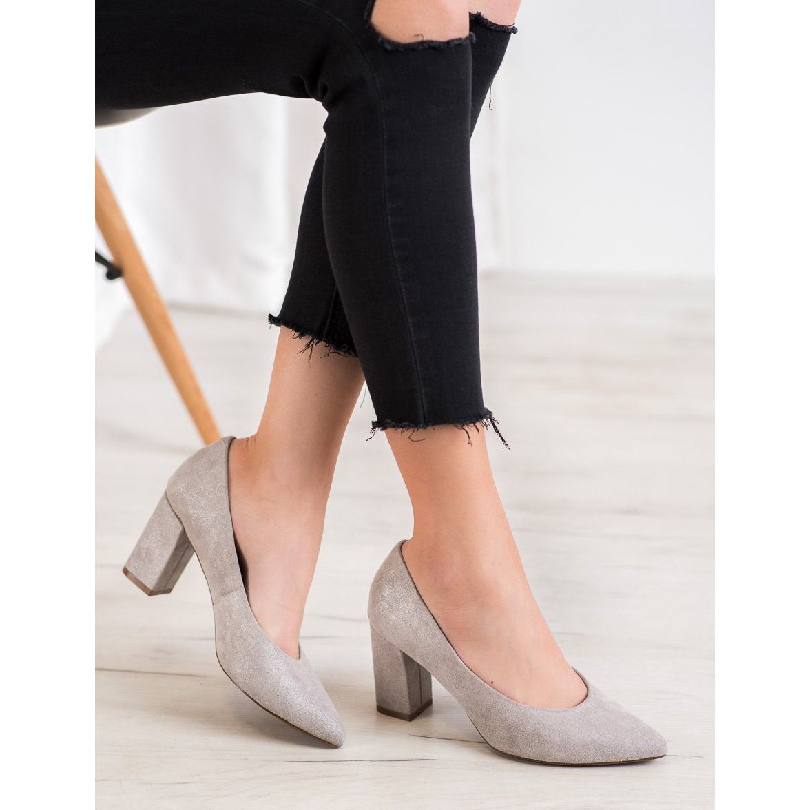 W. Potocki salonke sa sivim svjetlucavim sjajem savršen su izbor za žene koje žele spojiti eleganciju s jedinstvenim stilom. Ove prekrasne cipele izrađene od visokokvalitetne imitacije antilop kože oduševljavaju svojim bezvremenskim dizajnom koji će biti savršen kako za svakodnevnu upotrebu tako i za posebne prilike.