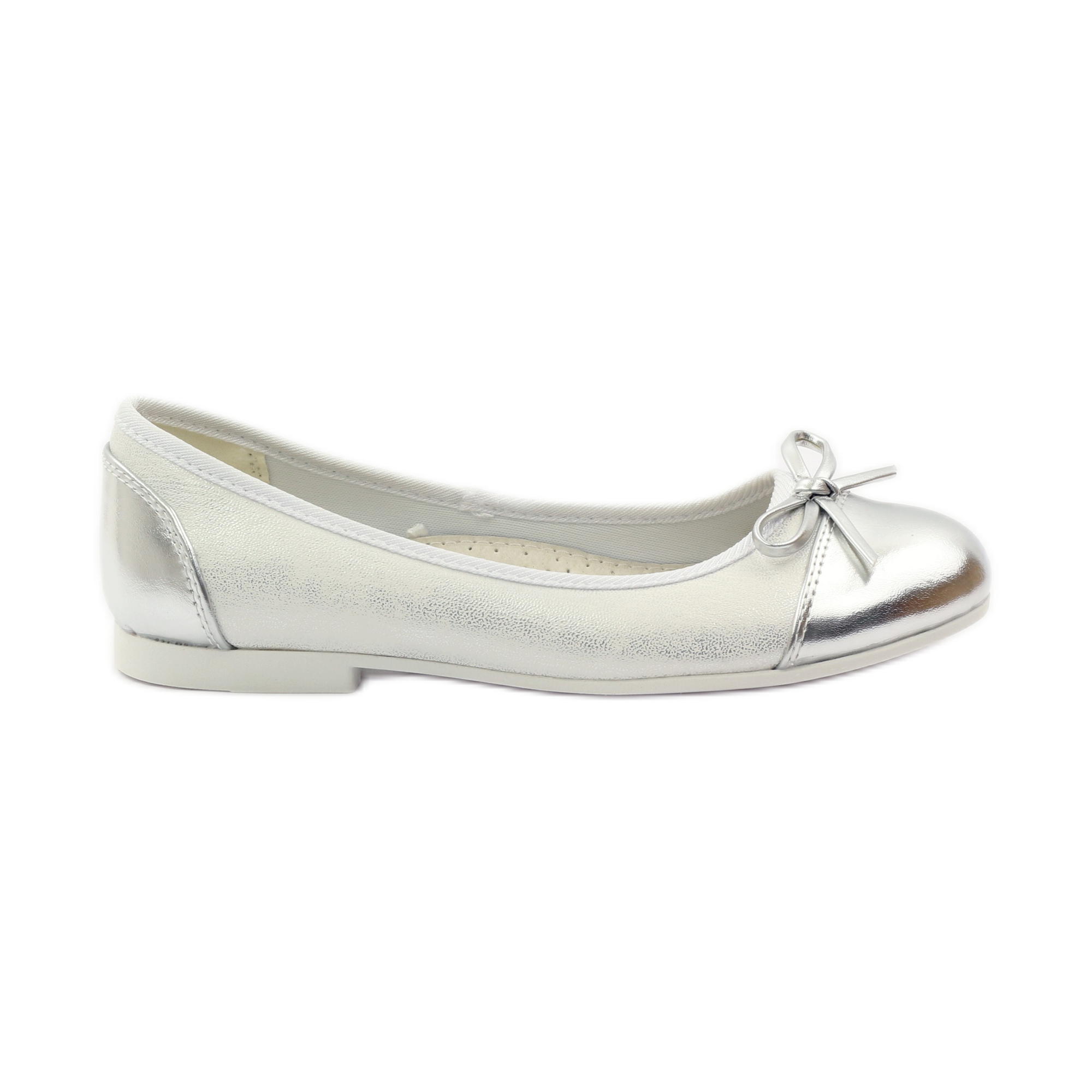 Bijele američke balerinke s mašnom savršen su izbor za svaku malu elegantnu djevojčicu. Ove šarmantne cipele iz American Cluba spajaju klasičan dizajn i udobnost, što ih čini savršenim rješenjem za razne prilike. Izrađene od ekološke kože u srebrnoj i bijeloj boji, izgledaju iznimno stilski i moderno.