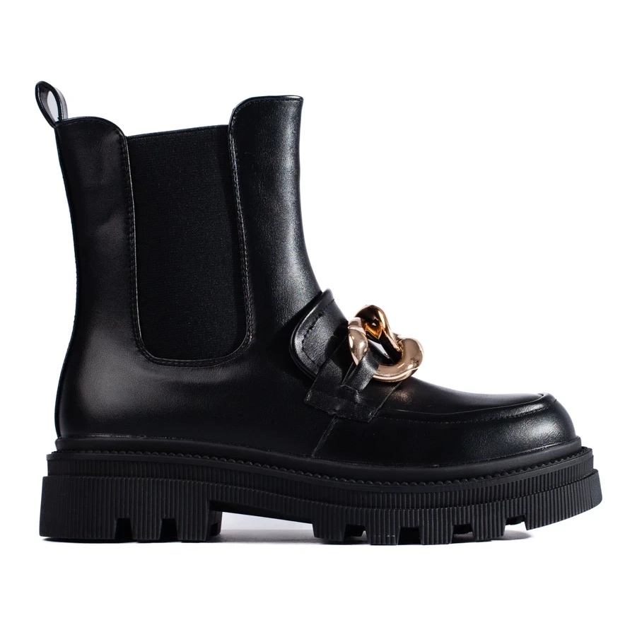 Moderan, udoban radnici na drugoj Marek platformi - crne čizme za gležnjeve idealne za jesen/zimsku sezonu. Kombinacija ležernog dizajna s modernim zlatnim ukrasima i praktičnim zagrijavanjem čini ga svakim danom dobrim izborom.