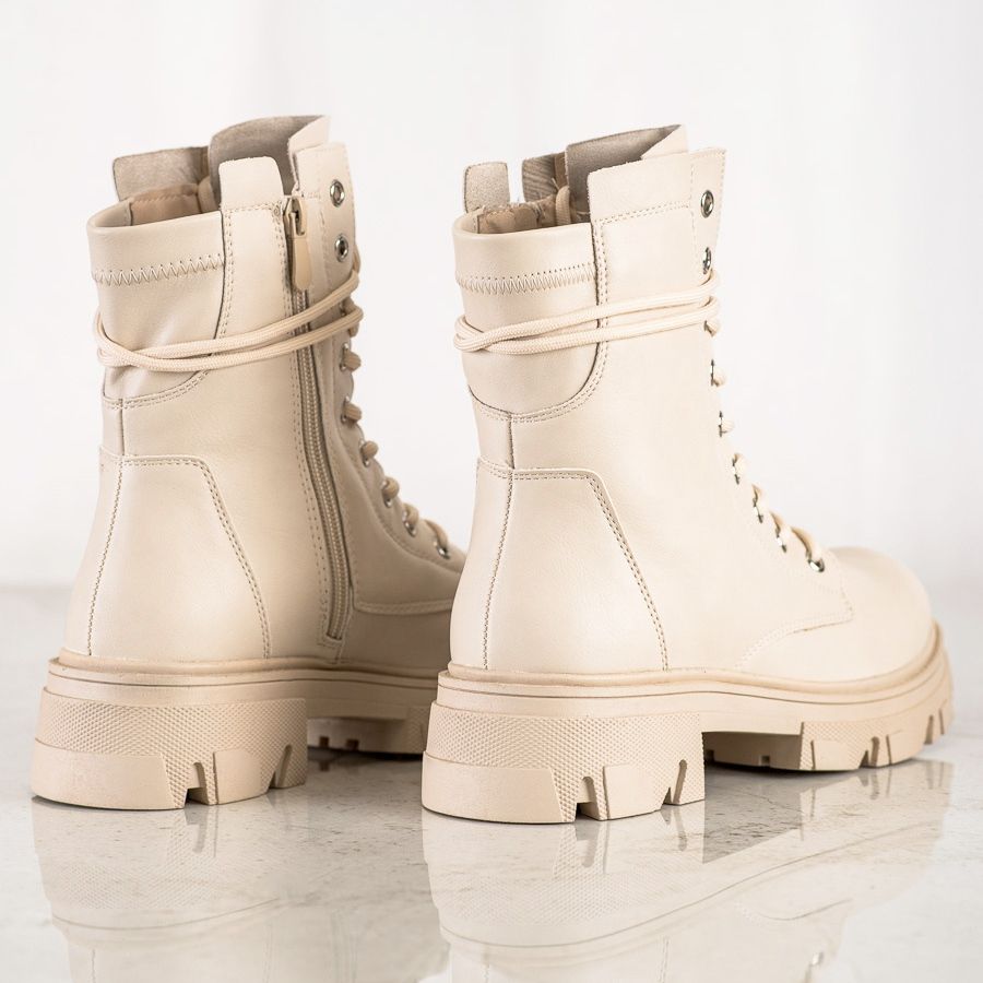 Upoznajte Lace-up Workers od eko kože u bež boji brenda Bestelle - savršen izbor za žene koje traže elegantne i udobne cipele za svaki dan. Ove ženske gležnjače spajaju casual i rock stil pa se savršeno slažu i uz traperice i uz haljine.