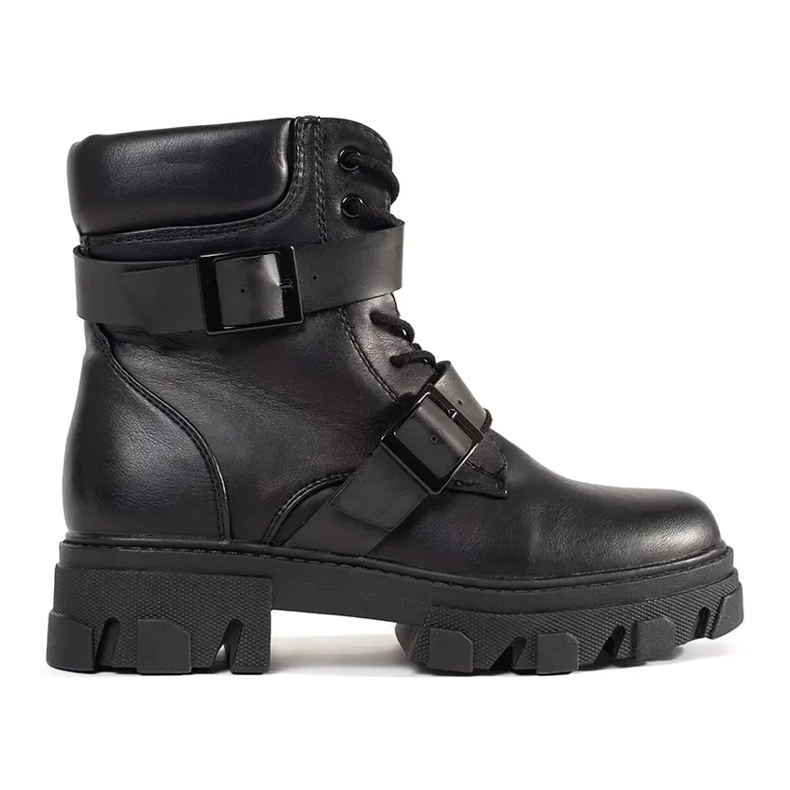 Moderan, udoban i pripremljen za hladnije dane - crni radnici s ukrasnom, crnom kopčom prijedlog je žena koje cijene ležerni izgled s nagovještajem elegancije. Laked Eco -leather daje im moderan sjaj, a krzno u umetu pruža dodatnu udobnost i zagrijavanje.