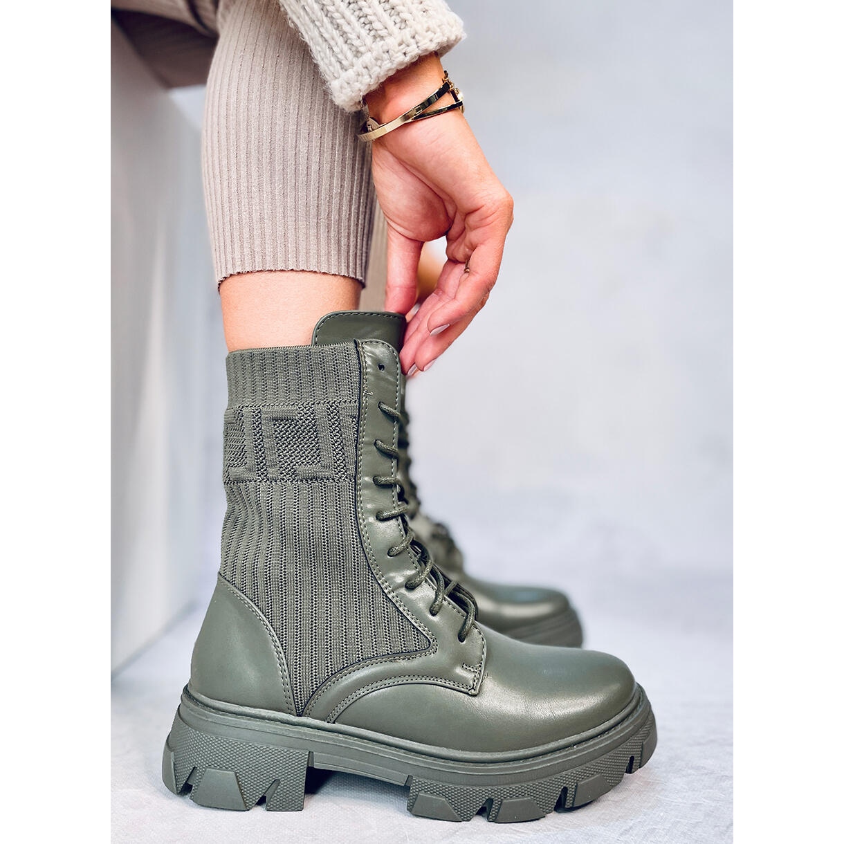 Moderni, ugodni i puni karaktera-zeleni radnici obavezni su za dame koje su se usredotočile na moderan gradski izgled. Fleksibilna, "čarapa" gornja boja dobro se prilagođava tele, a gusti, potplat od 4 cm daje liknu lakoću i povećava udobnost nošenja cijeli dan. Savršeno za svakodnevne stilizacije - od traperica do prozračnih haljina u kombinaciji s dugim kaputom.
