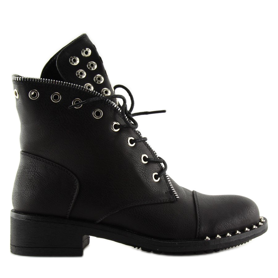 BH132-KB crne crne torbe s nitnama savršen su izbor za žene koje žele dodati malo rock šika svom izgledu. Ove čizme na vezanje savršeno spajaju klasičan kroj s modernim akcentima, oduševljavaju upečatljivim jezikom ukrašenim metalnim elementima i nitnama postavljenim na prednjoj strani potplata. Izrađene od visokokvalitetne ekološke kože, ove čizme ne samo da izgledaju izvrsno, već pružaju i udobnost zahvaljujući unutrašnjosti podstavljenoj nježnim krznom.